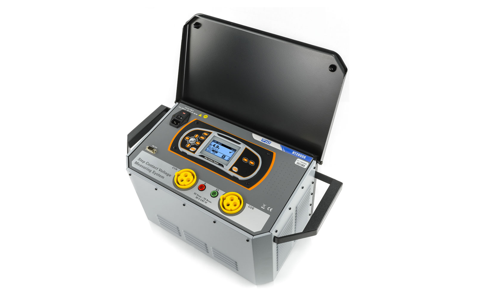 HT2055 je napreden merilnik za kontaktno napetost do 50A, primeren za industrijske električne inštalacije. Omogoča natančno merjenje napetosti, upornosti zemlje in tal, vključuje sinhronizacijo napajalne in voltmetrične enote ter shranjevanje podatkov.