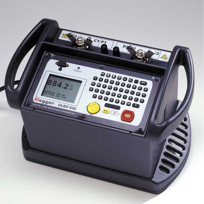 Robustni in lahki prenosni mikroohmeter za preizkušanje v elektrarnah na opremi, kjer standardi predpisujejo tokove nad 100 A, kot so omrežna stikala.