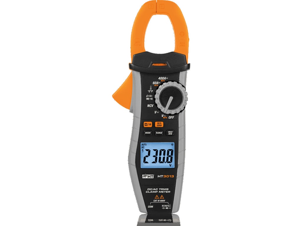 HT3013 tokovne klešče lahko merijo AC/DC tok do 400 A in AC/DC napetost do 600 V, upor, frekvenco, kapacitivnost, delovni cikel, temperaturo s pomočjo sond tipa K, neprekinjenost in preskus diode.